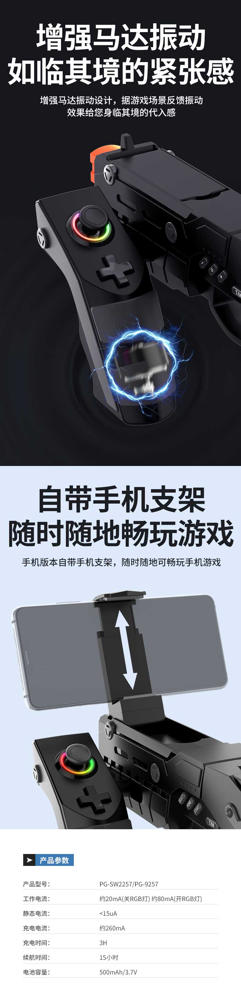 6. 产品符合人体工程学, 手感舒适,带有马达振动功能,游戏时动感逼真,身临其境。